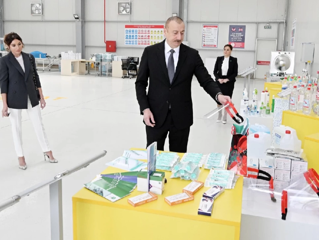 Azərbaycan Respublikasının Prezidenti İlham Əliyev və birinci xanım Mehriban Əliyeva aprelin 6-da Sumqayıt Kimya Sənaye Parkında “Bakı Tekstil Fabriki” MMC tərəfindən yaradılan tibbi maska istehsalı müəssisəsinin açılışında iştirak ediblər.