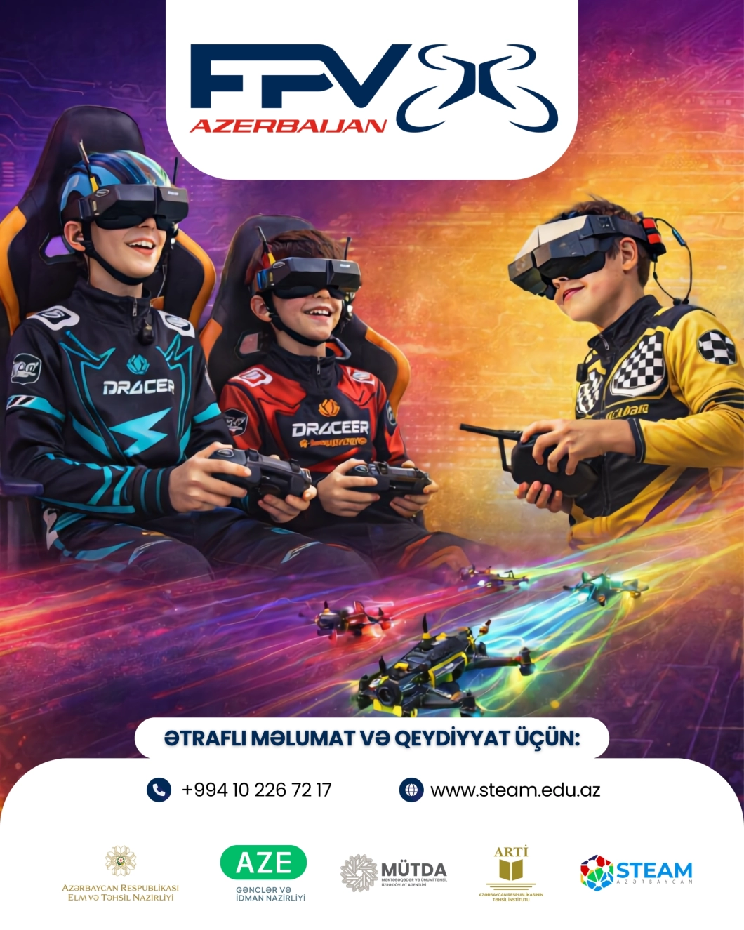 First Person View Drone (Dron idmanı) yarışı start götürür! Yarış şagirdlərə problem həll etmə, müstəqil işləmə bacarığı, özünü idarəetmə, sürətli qərarvermə, analitik düşüncə, disiplin və psixoloji dözümlülük kimi bacarıqlar qazandırır. 🌊 Qeydiyyat artıq başladı! Sürət və innovasiyanı birləşdir, yarışa qoşul!